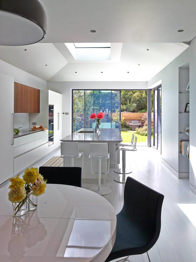 The house was designed for a professional couple who spend a lot of time in Australia and in the UK. They enjoy barbecues and outside living and wanted an outside/inside space for their semi-detached house linked to Blackheath.