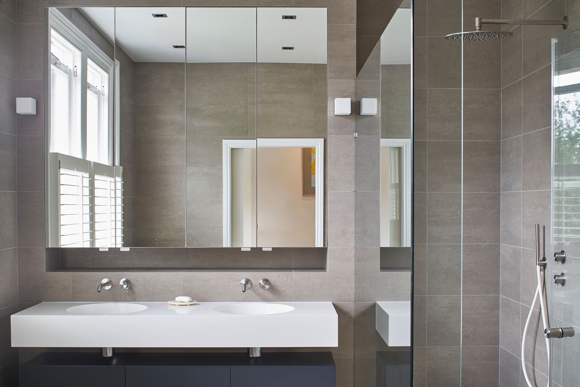 Internally, a great deal of care has been taken to preserve and upgrade the original decorative features of the house, whilst subtly introducing contemporary spaces. The hallway and living rooms have been opened up to provide clear views to garden, through intricate timber screens and minimal framed glazing.