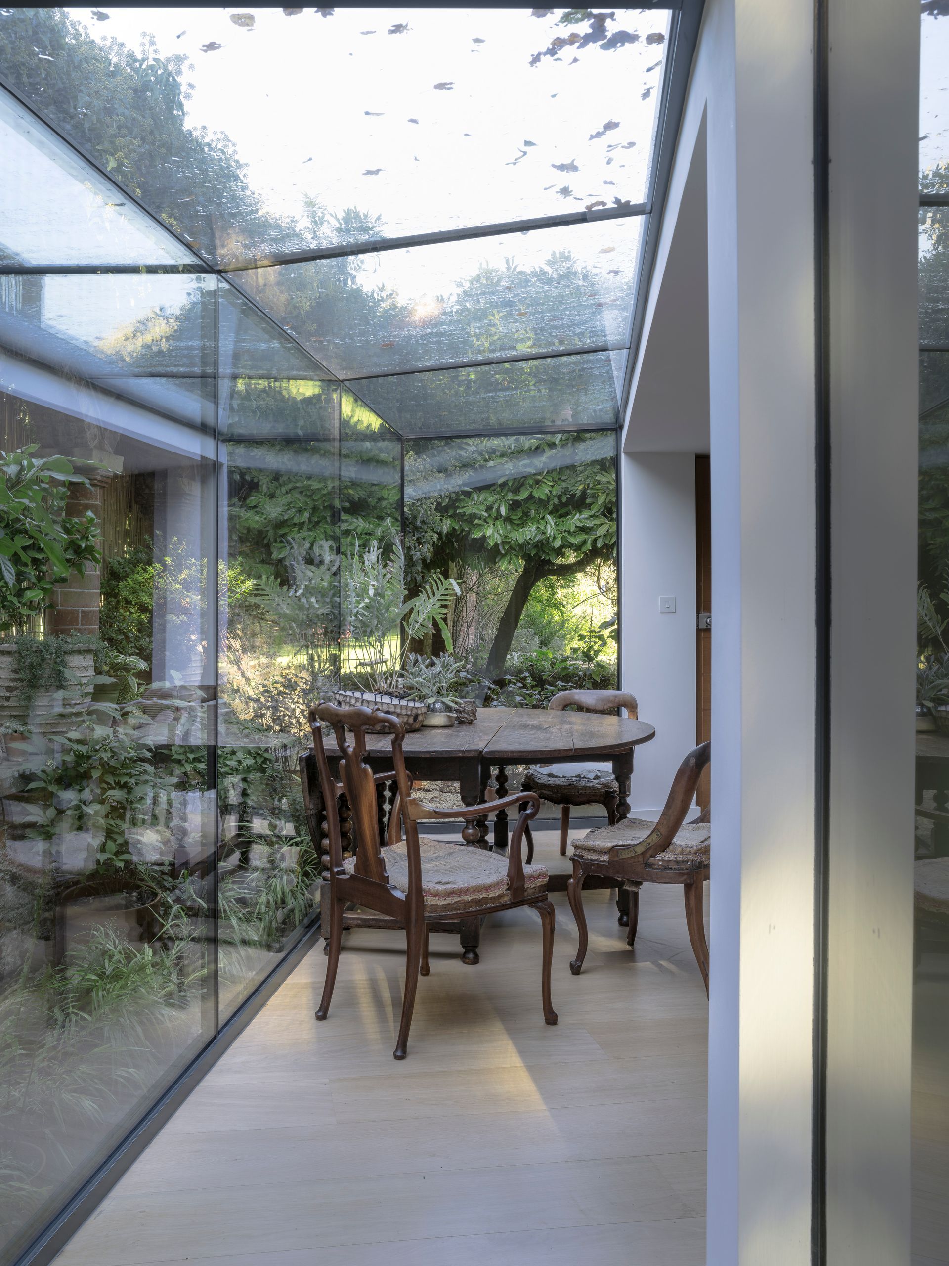 "The mirroring of the meadow and the old house in the glass is stunningly beautiful, utterly contemporary yet meditative and sympathetic to the old parts of the building.