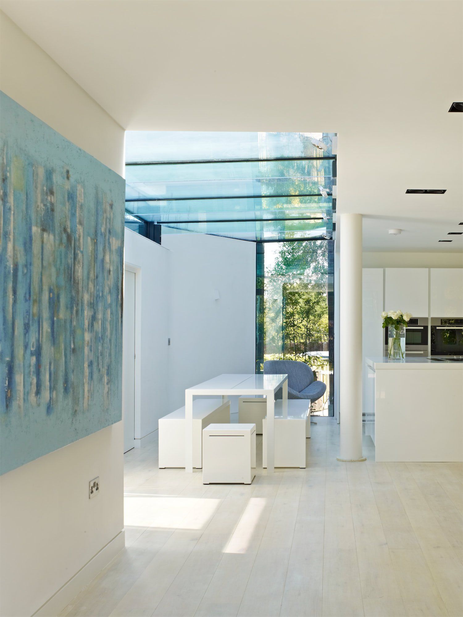 The glass section is to act as a separator between the original house and the garage, now a rear living space, almost doubling the floor space on the ground floor, creating a far more modern open living arrangement.