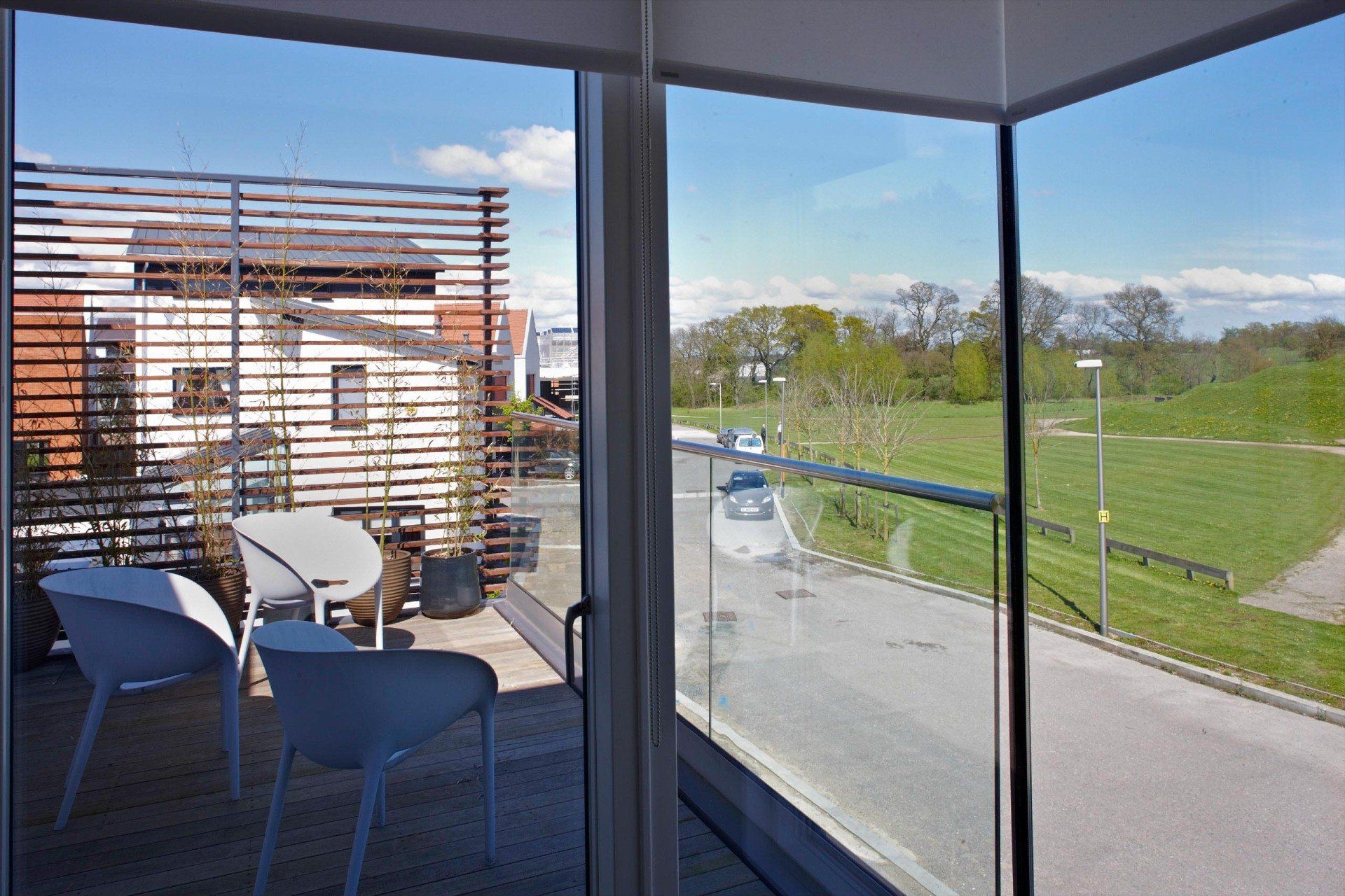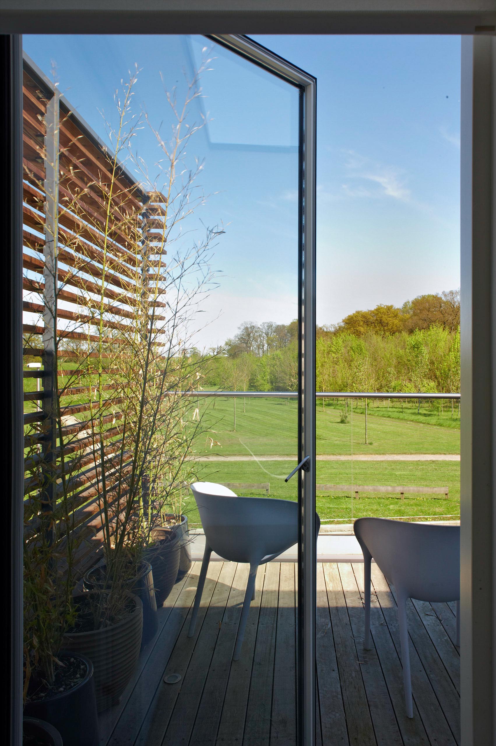 The scheme also utilises a wind catcher in order to provide natural ventilation. The sustainable aspects were further reinforced by the use of a solar water heating system, low temperature wet underfloor heating system and solar controlled louvre system on the south-western glazed garden to maintain thermal comfort.
