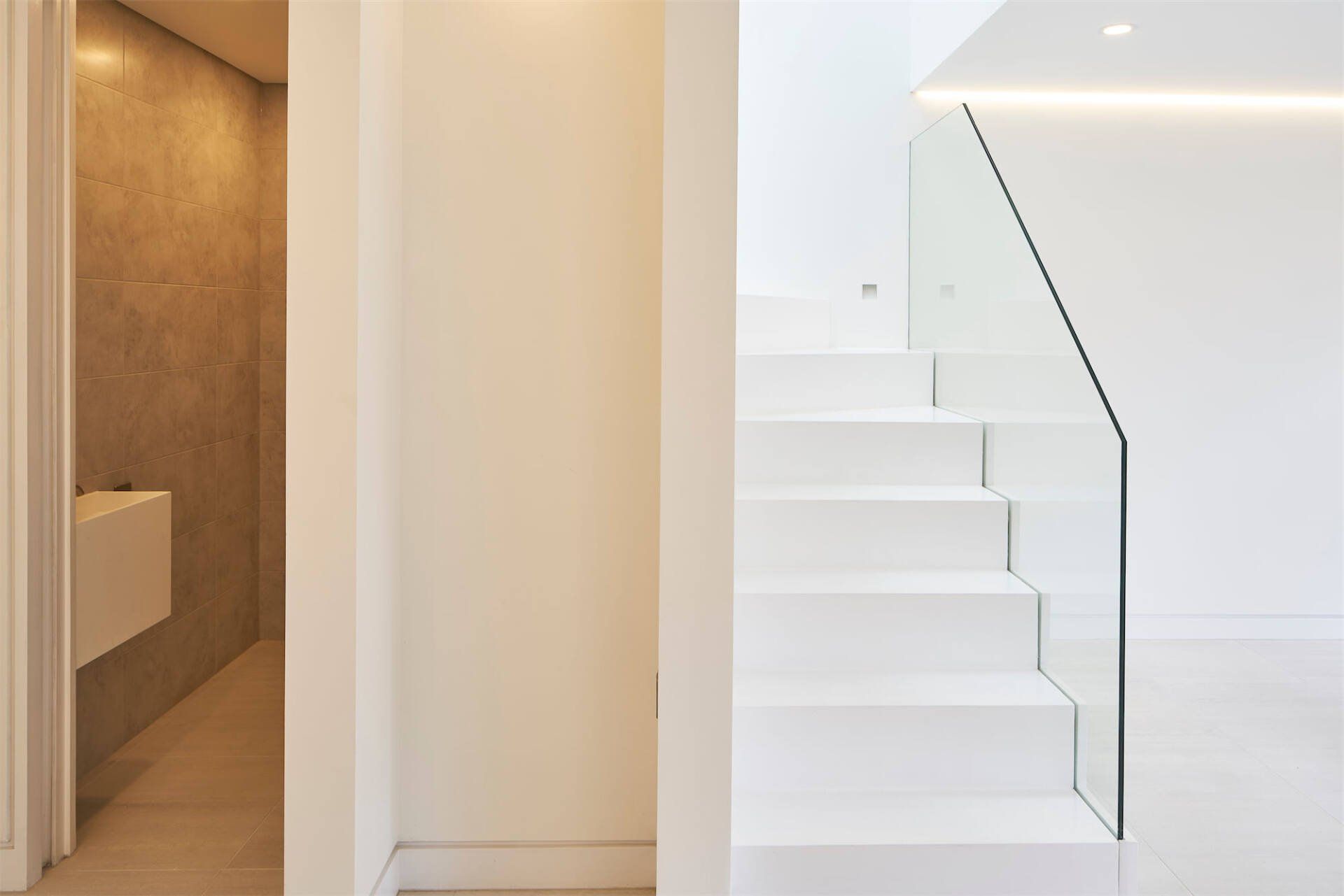 Light plays an important role in this house; every room is flooded with it. Not only does this enhance the internal living spaces, it making them feel more spacious and luxurious. The light bounces off the clean and simple internal material palette, defined by sharp clean lines, flush skirting boards and shadow gaps.