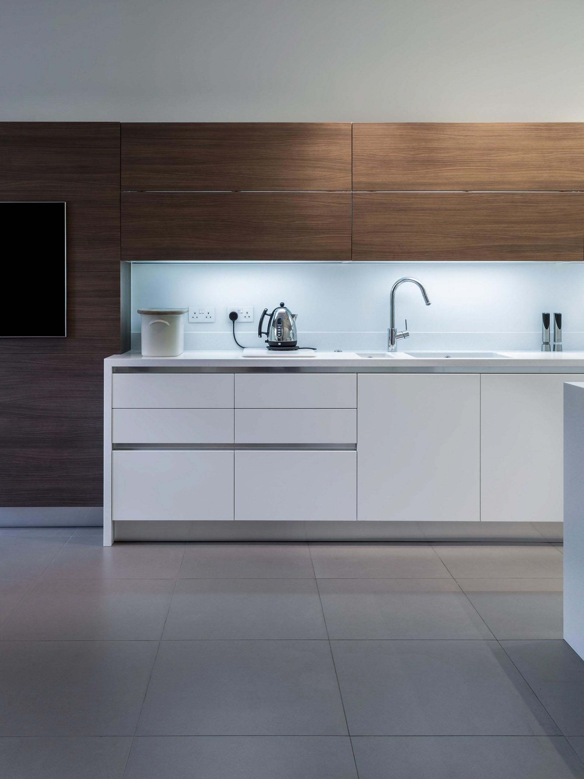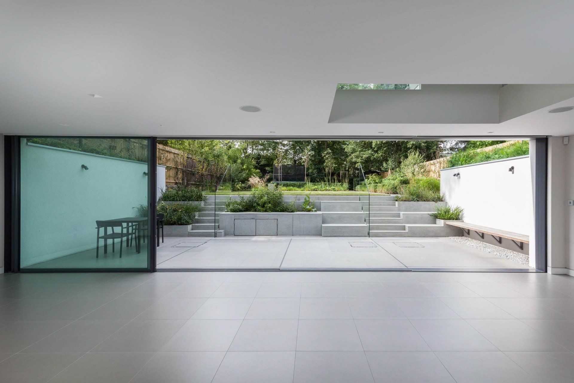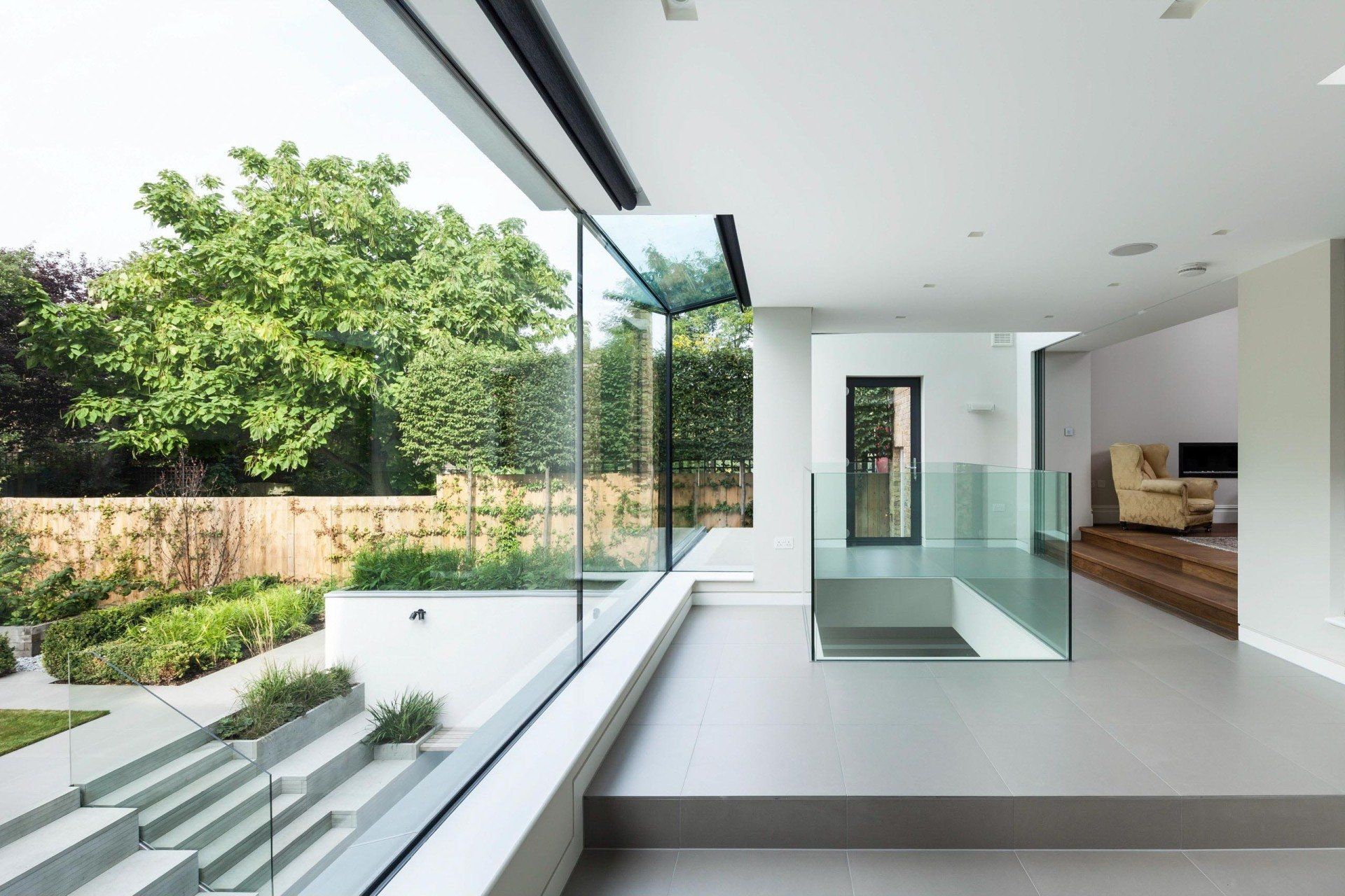 On the lower ground floor, a wall of glazing draws large amounts of natural light into what was previously an unused basement. Vertical circulation links the ground and basement level through a light well void, creating multiple views between the two space. The interior design by RDA juxtaposes the existing classical features with modern influences. To complement the rear facade, the garden has been redesigned with the re-establishing of hard and soft areas with pleached trees and additional natural features used to create private social spaces.