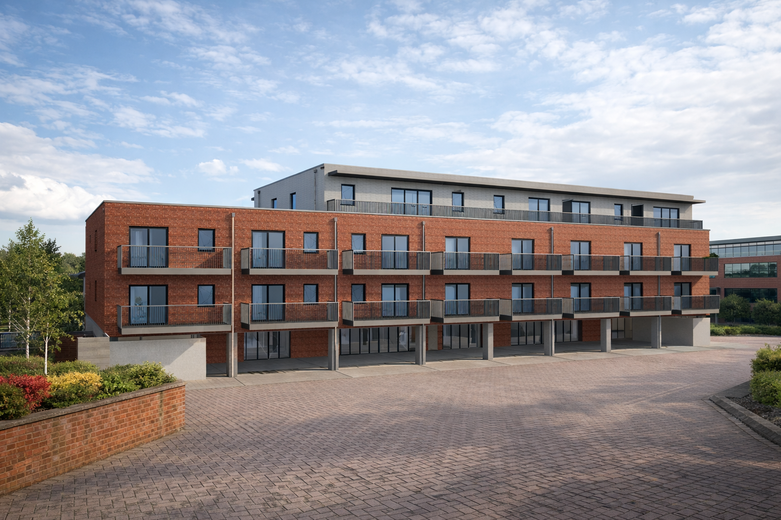 This proposal introduces a new part four and part three-storey residential building to the rear of Atria House, occupying an area formerly used for surface car parking. The development builds on the site’s ongoing transition from office to residential use and, together with works already underway, contributes to the delivery of 37 new homes within a highly sustainable and well-connected urban location.