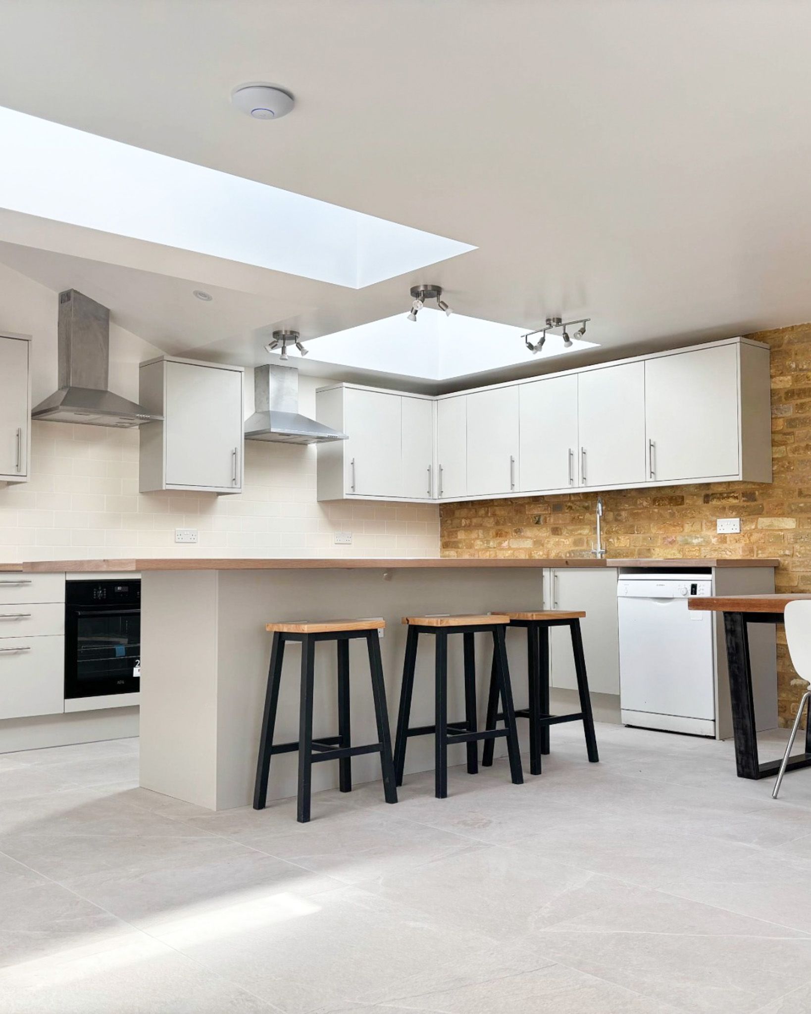 Alongside spatial enhancements, the scheme incorporates upgraded insulation and a high-efficiency heat pump, significantly improving thermal performance and reducing overall energy demand. A carefully curated palette of contemporary materials, combined with a balanced composition of solid and glazed elements, ensures the new interventions are distinctly modern while remaining complementary to the original Victorian fabric.