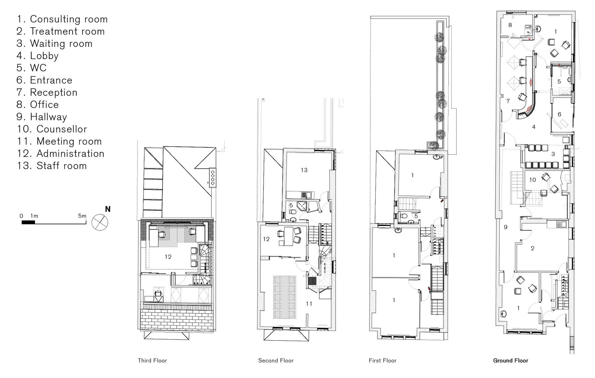 The works were staged over a longer duration than usual, allowing for the surgery to remain fully functional. Working in three phases, the upper levels were addressed first, providing additional administration and triage spaces. Secondly a temporary reception area and accessible route was created to allow for works to the existing reception area to commence. This created an additional consulting room. Finally, the last consulting room and staff locker room were finished as the temporary reception was removed.