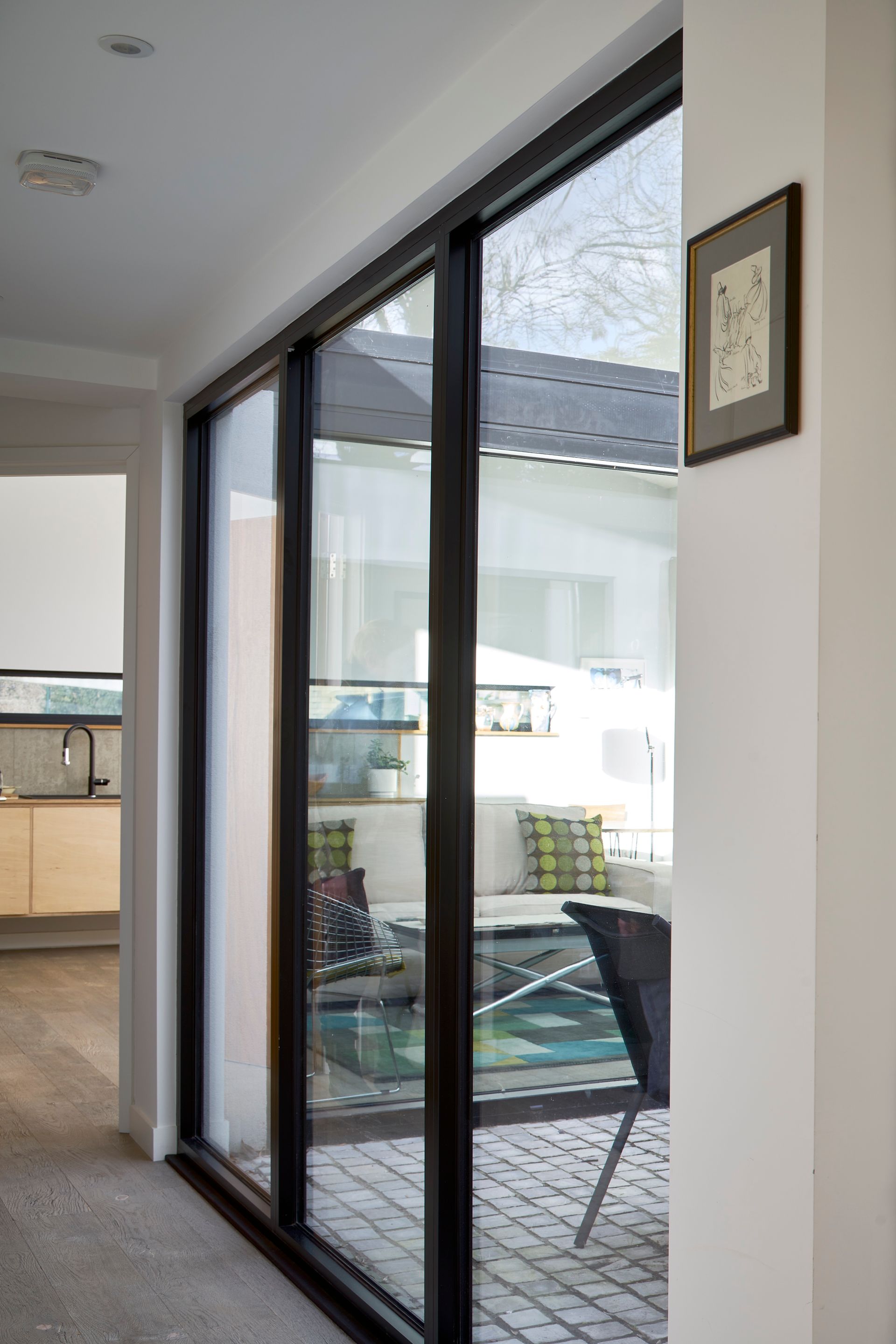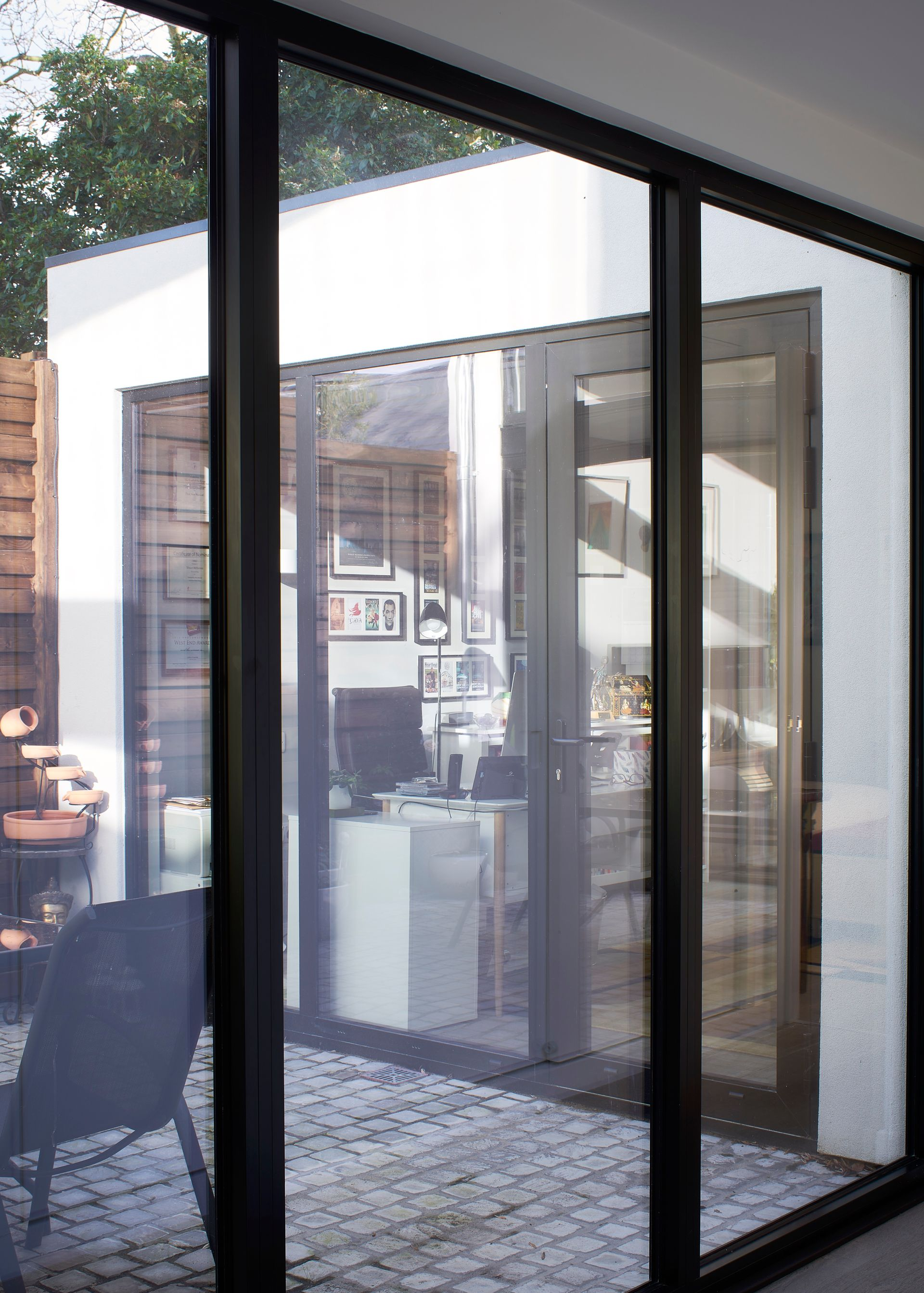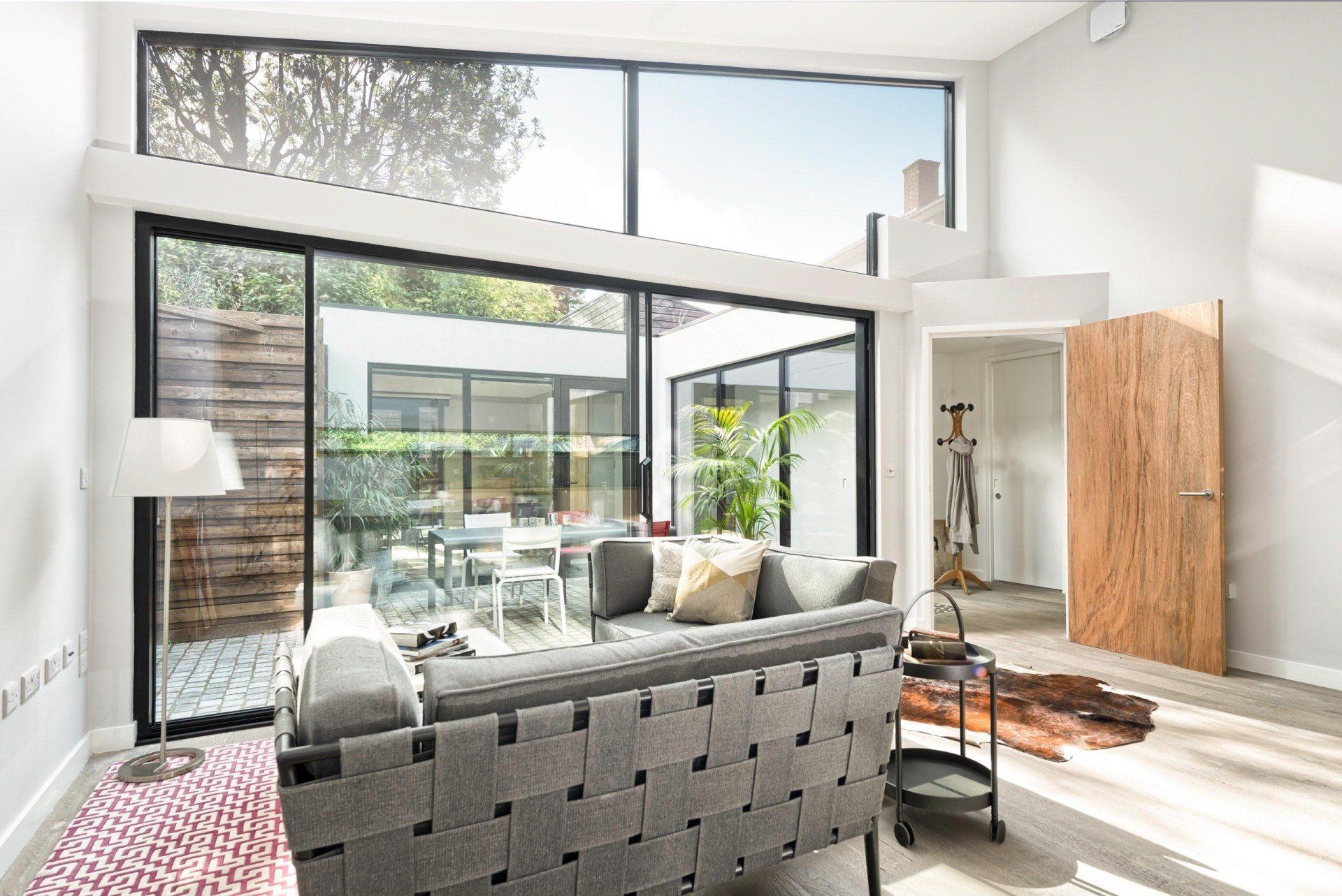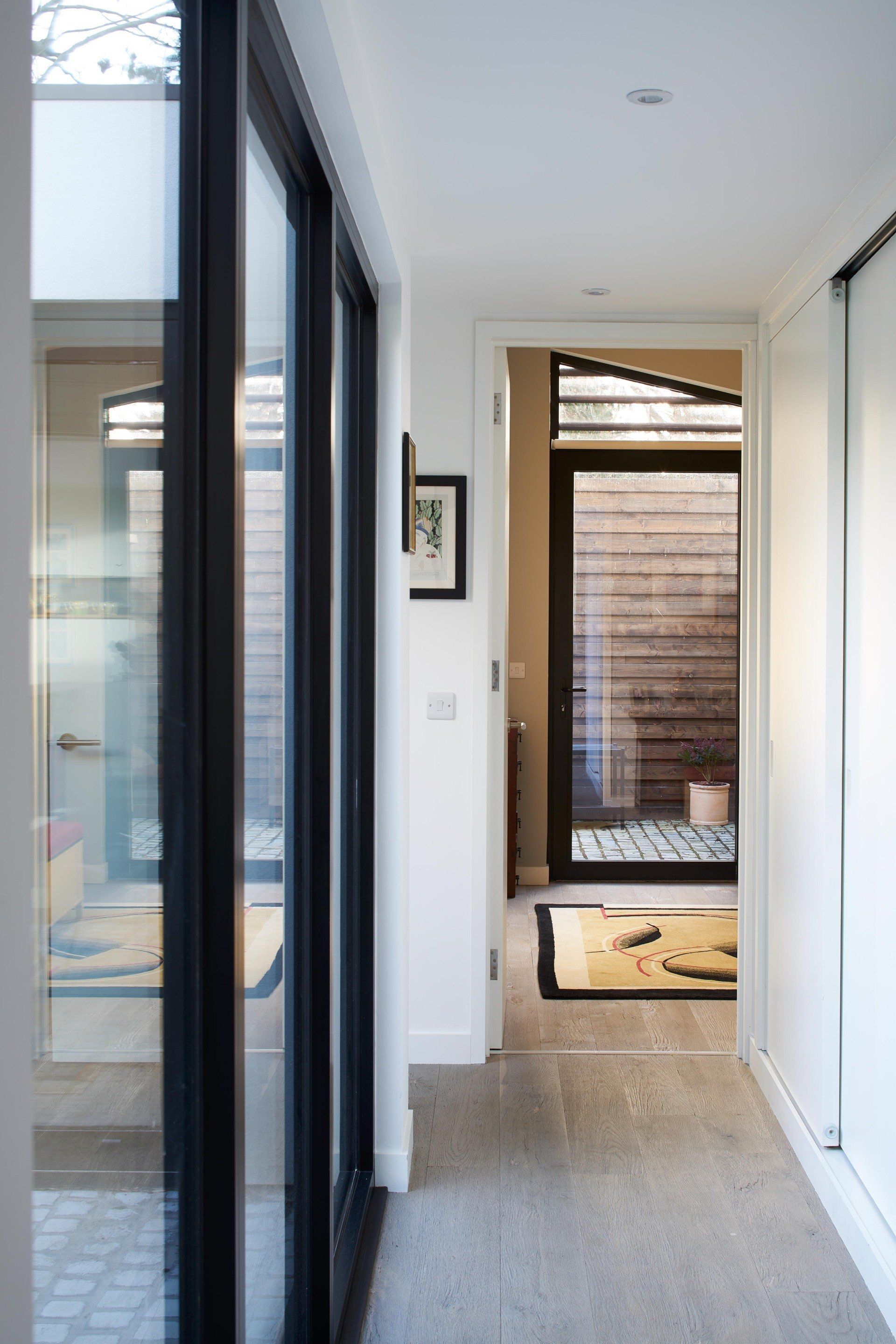 Modern Courtyard was designed as a direct response to the site; overlooked, barely accessible and in a quiet cul-de-sac. The response to this setting was to firstly sink the house in order to be able to gain ceiling height, then to organise the plans around two central courtyards. Simultaneously throwing natural light into the house and satisfying London Plan amenity requirements. The form evolved presents anonymous facades and industrially infused massing. Creating architectural interest without becoming too imposing. Cleverly positioned glazing provides outward views without the risk of being overlooked.