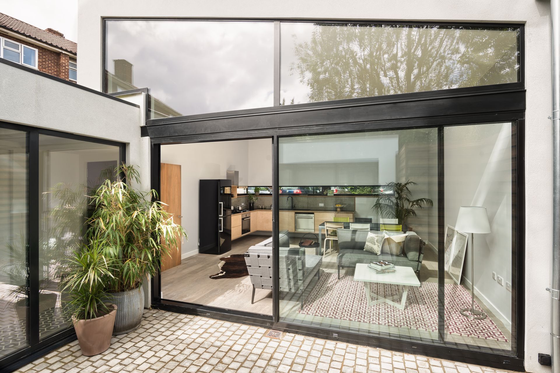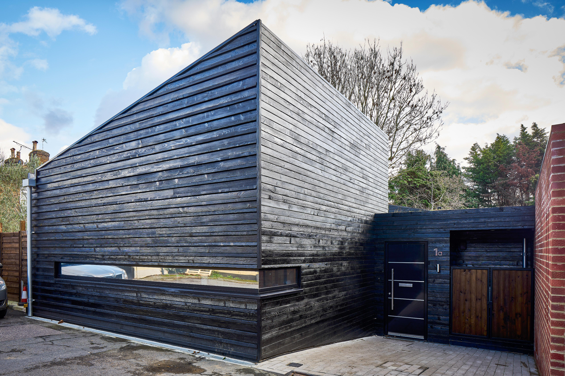 Built on the site of two former garages, this prefabricated house that was erected on site in just one day, despite having taken over a year to achieve planning permission.