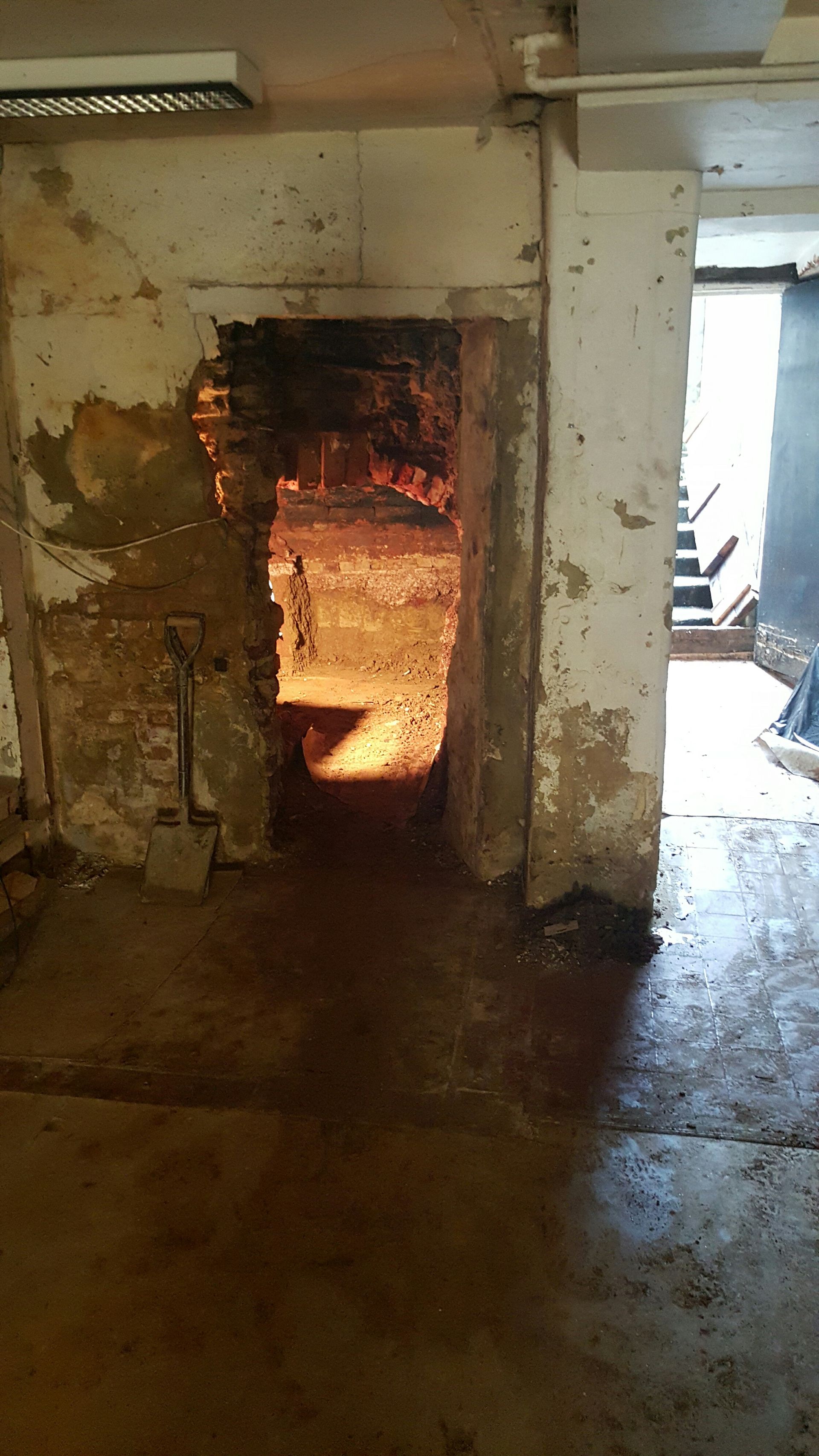 The discovery of the original brick oven, now transformed into a private meeting room.